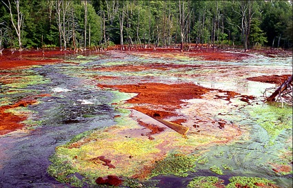 AMD o “Acid Mine Drainage” es agua cargada con metales ácidos que cubren los lechos de los ríos de sedimentos naranja, causando grabes problemas a las especies que habitan en los ecosistemas cercanos.